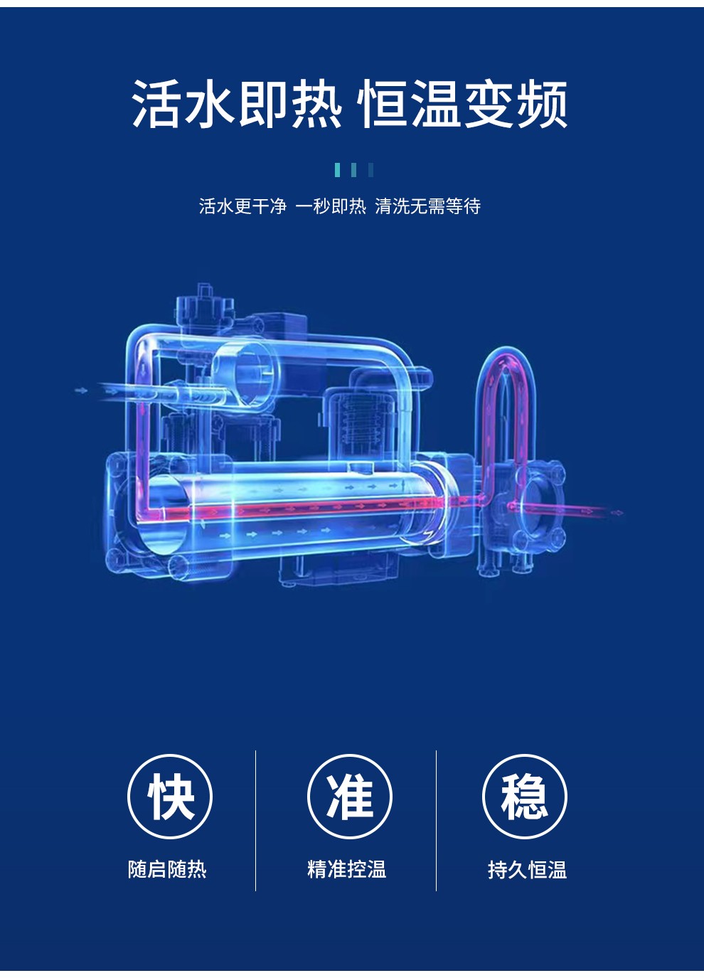 3、 變頻即熱        4、 恒溫暢洗